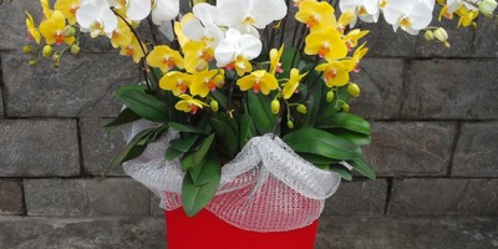 Hoa lan hồ điệp Tết với đầy đủ màu sắc đua nở trong không khí trời xuân, thời khắc giao mùa chuyển giao giữa năm cũ và năm mới. Đó là sắc hoa trắng,vàng, đỏ, tím…. Mỗi loại một ý nghĩa và biểu tượng khác nhau nên có thể dùng làm quà biếu Tết cho bạn bè,người thân, đối tác…trước đại sảnh công ty trong ngày tết.
